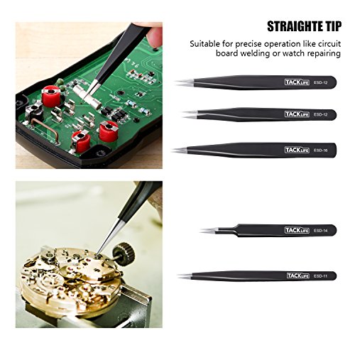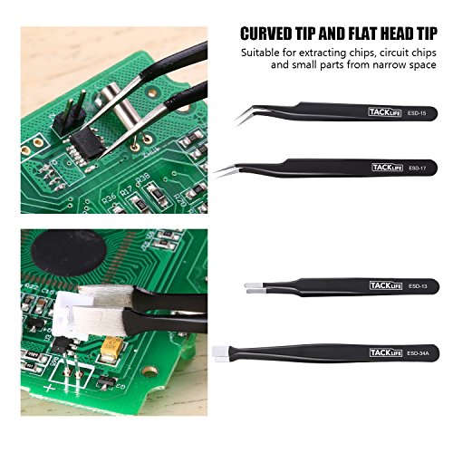 - ▲WHAT YOU GET - Tacklife HIT1A ESD Tweezers: 2 pair of flat head tweezers,2 pairs of curved tips tweezers and 5 pairs of straight tip tweezers, storage bag, 24-Month Warranty