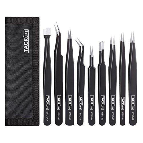 Tacklife HIT1A ESD Precision Tweezers Set 9 Pcs Anti-Static Stainless Steel Non-magnetic Tweezers Set with Storage Bag for Electronics, Jewelry-Making,...