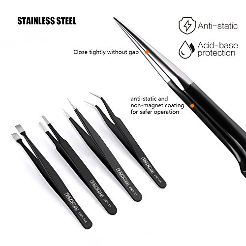 - ▲STAINLESS STELL - made of stainless steel with anti-static non-magnetic coating and acid-base protection,the precision crafted tips and perfectly aligned arms allow the set for the most professional work; and the protective cap can protect the tip from becoming dull and provide safety