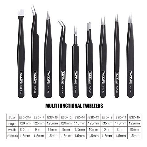 - ▲ 9 Pcs IN ONE SET - the ESD precision tweezers set includes 9 Pcs, 2 pair of flat round head tweezers,2 pairs of curved tips tweezers and 5 pairs of straight tips tweezers for craft, jewelry, electronics, watch, medical, laboratory, eyebrow & ingrown hair Removal work and more
