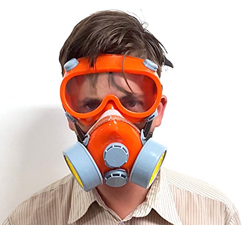 -. Brand : Voyager Tools -. Color : Orange -. EAN : 0708038674353 -. Feature : Includes goggles, filter box, respiration value and elastic ribbon / Goggles have 4 breathable vents that allow for no fog up / Double Cartridge easily changes out / Dual gas cartridges for spray painting and Organic Vapors of low toxicity / Great for sanding, painting or installing drywall. -. Label : SF -. Manufacturer : SF -. MPN : 10370 -. PartNumber : 10370 -. ProductGroup : Home Improvement -. ProductTypeName : BUILDING_MATERIAL -. Publisher : SF -. Studio : SF -. Title : Safety Respirator Mask With Vented Goggles Paint/Dust Dual Cartridge Respirator Mask -. UPC : 708038674353