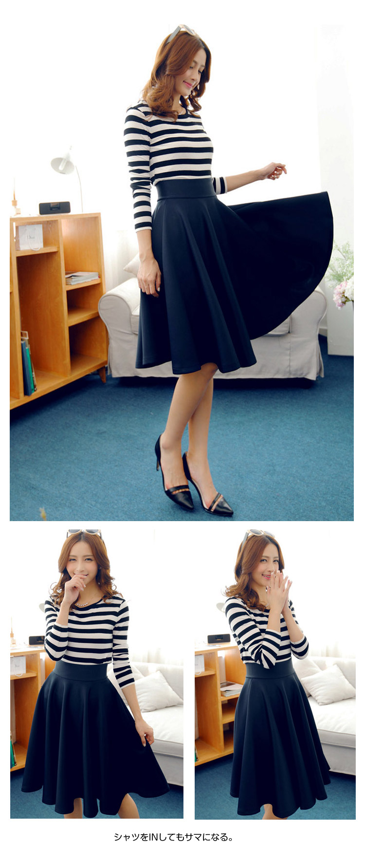| 絶対はずせないトレンドアイテム、フレアスカート?他にはないボリューム感と美しいシルエットが素敵!ウエスト部分に施されたくしゅくしゅギャザーでふんわりフェミニンシルエット&気になる部分もしっかりカバー。シャツをINしてもサマになる。秋冬ムード溢れる暖かい生地も大好評? | |