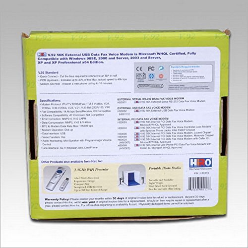 HiRO H50113 V92 56K External USB Data Fax Voice Dial Up Internet Modem Windows10 8.1 8 7 Vista XP 32-bit 64-bit