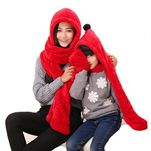Title : Cityelf Women's Plush Long Hoodie Hat With Mittens Gloves Scarves Shawl WJW0035