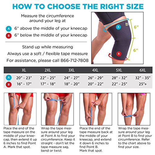 -. Feature : Before Choosing a Size - PLEASE MEASURE CAREFULLY! Use a soft, flexible tape measure and refer to the second image for measuring instructions. / This plus size knee sleeve applies compression & warmth to your knee joint to reduce pain and swelling. Use for general knee pain, knee arthritis, patella and ligament issues, knee sprains and strains, knee injury recovery and prevention. / This extra large knee sleeve helps obese or overweight men and women who have a lot of stress on their knee joints. Reduces knee joint pain to make walking and standing easier. / Made of premium grade latex-free neoprene that is lightweight, soft and comfortable. Fits smoothly against your skin so you can wear it under pants - and no one will know you are wearing a knee brace! / Available in XL, 2XL, 3XL, 4XL, 5XL and 6XL sizes. Please measure carefully. If you are in-between sizes, order the smaller size.