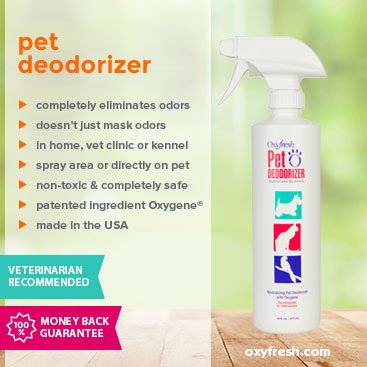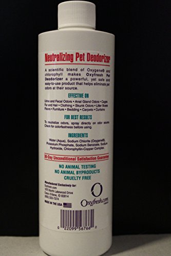 ReleaseDate : 2010-09-12 Studio : Oxyfresh Publisher : Oxyfresh Binding : Misc. Product Description Pets can get themselves into the smelliest situations! Oxyfresh Pet Deodorizer conquers even the most terrible odors - whether your pet has rolled in something unspeakable, or been sprayed by a startled skunk. With Pet Deodorizer, you've got Oxygene? on your side, our exclusive odor-eliminator that breaks down and neutralizes nasty smells and leaves your pet fresh and huggably clean. 0