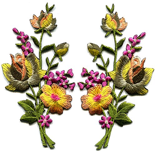 Yellow pink roses pair flowers floral bouquet boho embroidered appliques iron-ons patches new
