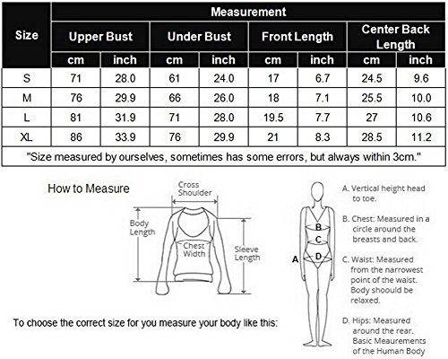 -. Feature : This women's yoga bra made of stretchy and breathable fabric, sweat-wicking and quick dry,molded cup insert,smooth looking and firm support / Lightweight compression sport bra featuring U neckline and racerback with looped elastic keyhole.Wirefree Removable molded foam cups for modesty and shaping,Wide cushioned,no-bounce,no-slip strap provide more comfort Sports Bra / You can fit this Sports Tank Bra with a yoga leggings.Suitable for Yoga, indoor/outdoor sports, exercise, fitness, gym / Our model's information:Bust 35.43'',Waist 23.62'',Hip 35.43'',High 5.74'.S size fits well. / Enjoy breathable friendly sporting bra for women that emphasizes on superior quality. Click 'Add to Cart' now!