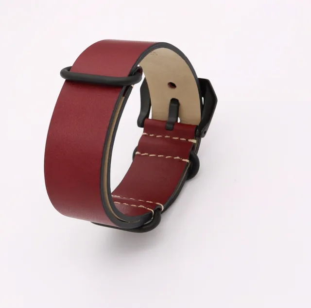 | [해외] 24 미리메터 최신 남자 레이디 레드 빈티지 시계 밴드 스트랩 벨트 진짜 부드러운 가죽 실버 나사 버클 고급 나토 Zulu 링 |