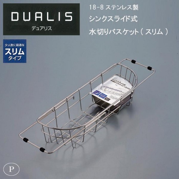 底面ウェーブ状の水切りバスケットです。少人数に最適なスリムタイプ。 製造国:日本 素材・材質:本体:18-8ステンレス鋼保護ゴム:合成ゴム 商品サイズ:(約)幅135×奥行455~555×高さ95mm 仕様:耐荷重(約)3kgスライド式 ※サプライヤー直送品 ※2019年2月下旬入荷分予約受付中【商品名】パール金属 H-5645 デュアリス 18-8ステンレス製シンクスライド式水切りバスケット(スリム)