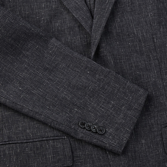 - 기본 노치 라펠의 투버튼 싱글 브레스티드 디자인으로