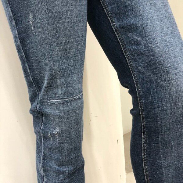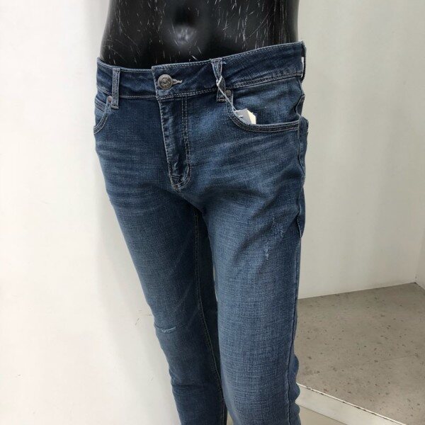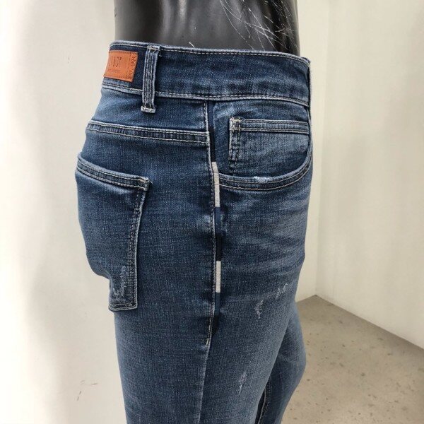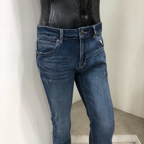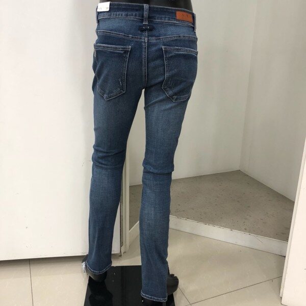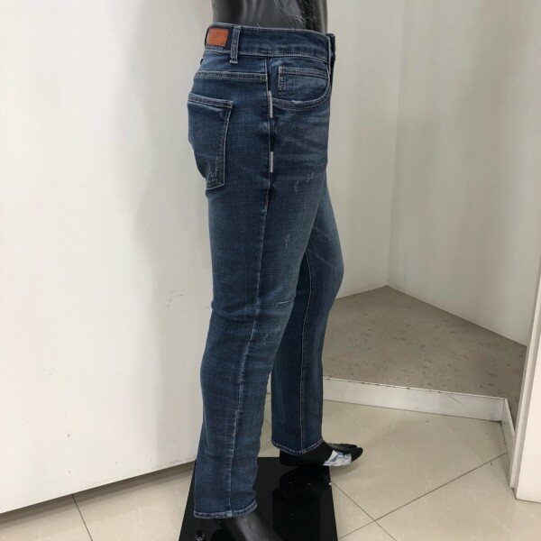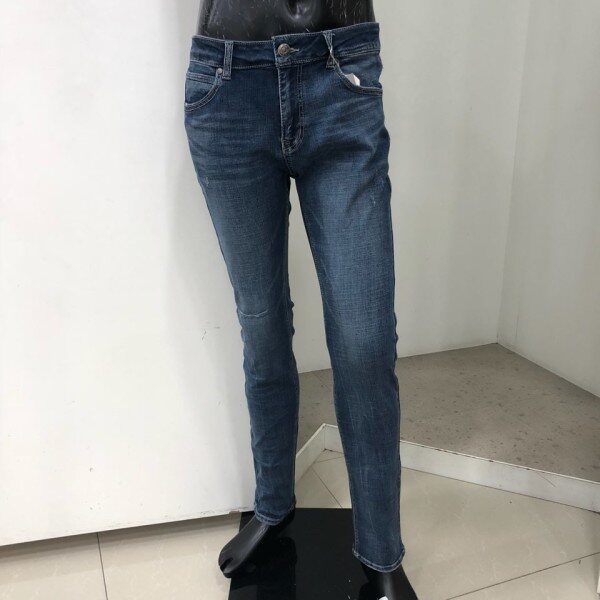 힙과 허벅지는 약간 여유가 있으면서 무릎에서 밑단까지는 슬림하고 스트레이트하게 떨어지는 베이직한 핏입니다. 타이트한 스키니 핏을 부담스러워 하는 고객님께 권장해드립니다.경슬럽 스판데님 소재로 약간 그레이시하면서 고급스러운 느낌의 미디움인디고 컬러에 앞포켓 옆의 테이핑형태 자수를 가미한 포인트 데님팬츠 입니다.