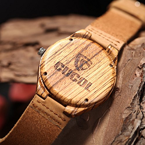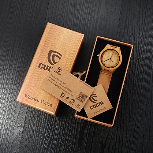 Cucol(《구코루》) Cucol(구코루)후숀목제 손목시계 새로운 스타일 가죽 밴드 고급 브랜드 손목시계 목제죽의 나무의 인기 높은 아름다운 화상 조각 clock