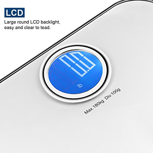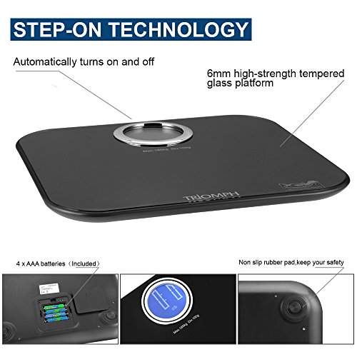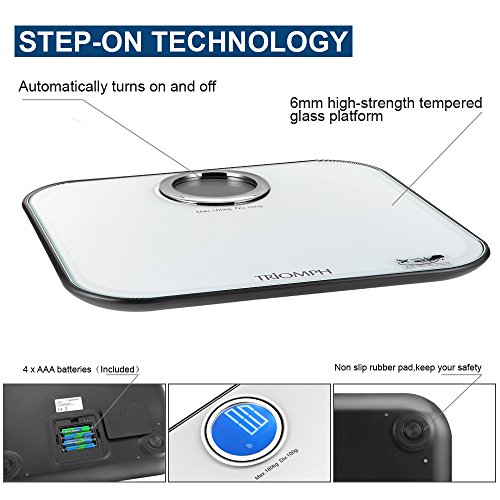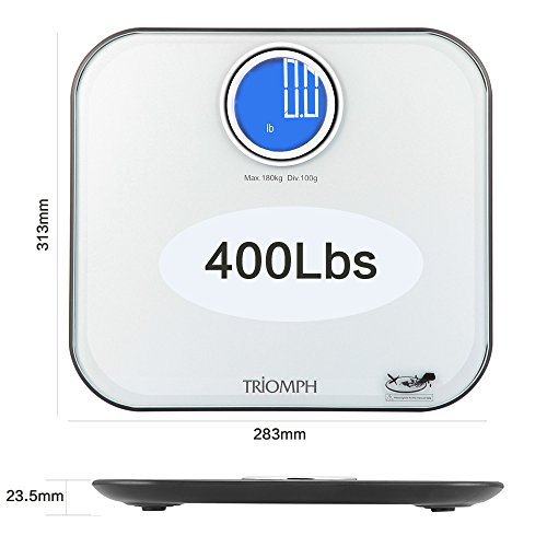 -. Title : Triomph High Accuracy Digital Body Weight Bathroom Scale with 400lb Capacity, Step-On Technology, Large Round Backlit LCD Display, 6mm Tempered Glass