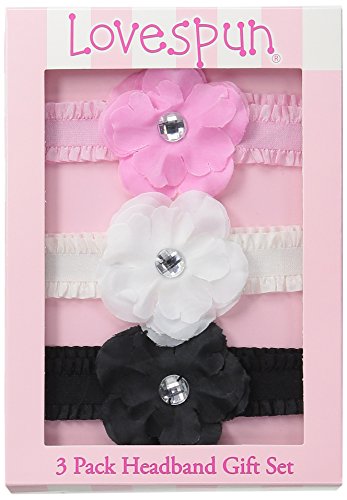 Lovespun Baby Girls' Flower 3 Pack Boxed Headband Set
