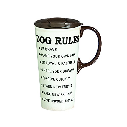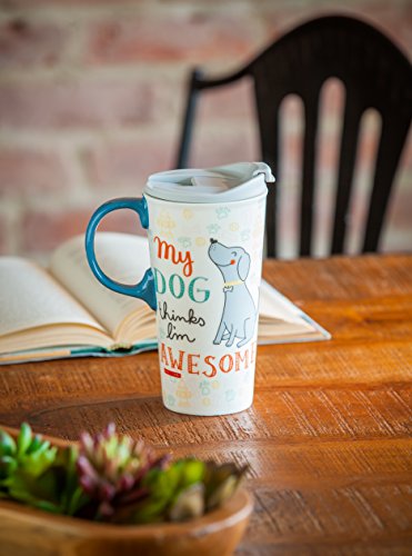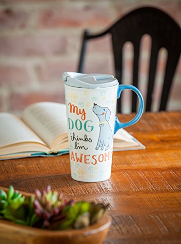 Cypress Home's Ceramic Travel Coffee Mug or Tea Cup is the perfect everyday beverage holder - The cup is adorned with a precious cartoon pup and text that says, "My Dog Thinks I'm Awesome" - Packaged in a coordinating gift box, making it a great present for family and friends