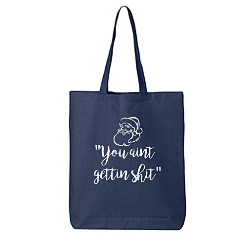 Product DescriptionThis cotton canvas tote bag features "you aint gettin shit" on the front. 15" Wide x 16" High x 3" Deep with 20" handles. Printed in the USA on an imported bag.0