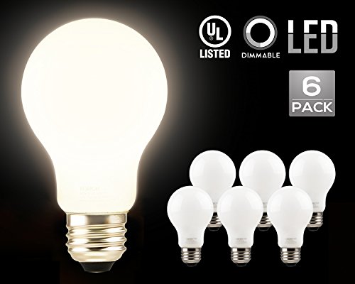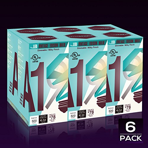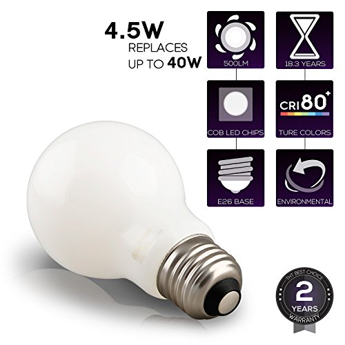 LED Dimmable A19 Frosted Glass Filament Light Bulb, 4.5W (40W Equivalent) Decorative Milky Light Bulb, UL-listed, 2700K Soft White, 360°Beam Angle, E26 Base, 2 YEARS WARRANTY, Pack of 6