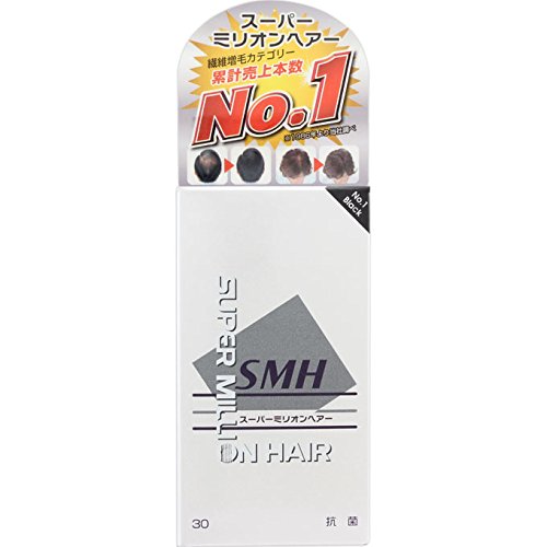 -. Feature : スーパーミリオンヘアーは、髪を生やすのではなく、瞬時に髪が生えたように見せる「新しいスタイルの増毛法」です。 / スーパーミリオンヘアーは特殊加工された植物性抗菌繊維で、薄毛の気になる部分にふりかけることにより静電気で髪に付着し、髪が生えたように自然な仕上りになります。その上にスーパーミリオンヘアミストをスプレーすることにより、雨や風、汗からスーパーミリオンヘアーを守り、長時間自然なスタイルを保ちます。 / スーパーミリオンヘアーは「早く、安く、自然に髪が生えたように変身」できます。髪の毛の化粧品として「スーパーミリオンヘアー」と「スーパーミリオンヘアミスト」をセットでご使用ください。 / スーパーミリオンヘアーは、植物系抗菌繊維を0.3~0.5mmに裁断した人工毛で、長い短い、太い細い、真直ぐや曲がった繊維等を混ぜることにより、髪に付着したときにボリューム感が出るように工夫しています。また、地肌に直接付着しますので、特に安全性を重視しお客様に安心してご使用いただけるように検査等を実施しております。ISO認証の取得や大学医学部でのアレルギーテスト証明など、目に見える形で使用するお客様に安全性を明示しています。
