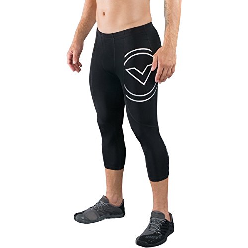 VIRUS Men's Stay Cool Tech 3/4 Length Compression Pants, Black/Reflective Silver, Medium