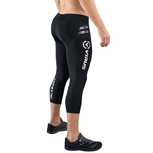 VIRUS Men's Stay Cool Tech 3/4 Length Compression Pants, Black/Reflective Silver, Small
