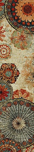 Contemporary and chic, the mix of floral medallions in varied jewel tones makes this rug a conversation piece. Create a dramatic room by using this rug as inspiration. Printed on the same machines that manufacture one of the world’s leading brands of printed carpet, this rug is extremely durable and vibrant. This technology allows the use of multiple colors to create a rug that is wonderfully designed and applicable to any room in your home. Crafted completely in the USA, this rug is made from durable stain resistant nylon. Printed on the same machines that manufacture one of the world’s leading brands of printed carpet, this rug is extremely durable and vibrant. This technology allows the use of multiple colors to create a rug that is wonderfully designed and applicable to any room in your home. With this gorgeous contemporary style and ornamental medallion print, this rug's pile height is 14/32 in high. Remember to keep the pile and fabrics in tip top shape. Area rugs should be spot cleaned with a solution of mild detergent and water or cleaned professionally. Regular vacuuming helps rugs remain attractive and serviceable. Only the best quality materials will do. This printed rug is loop cut with a loop pile on Wear Dated 100% nylon, with action backing. Made in USA.Feature
