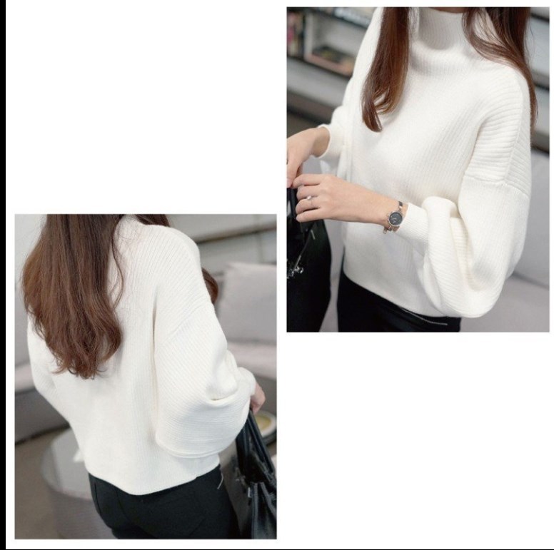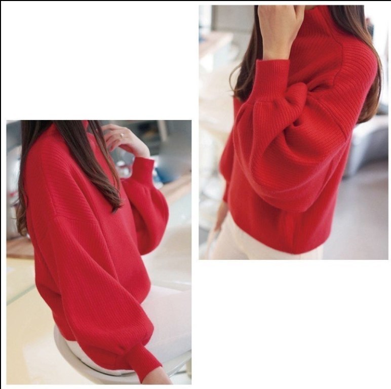 ボトルネック ドルマンバルーン袖 ゆるいニットセーター♪