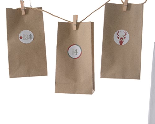 - Includes 1 twine rope, 24 wooden clothespins with felt star, 24 bags with date stickers