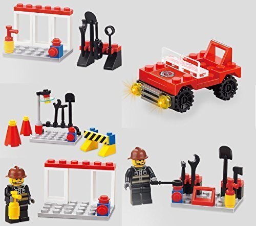 Fire Emergency Series 5-In-1 Building Bricks 99pc Toy set Fire Fighter - Road Block - Fire Equipment - Mini Fire Car - Brave Fire Fighters Set Kids Love Xipoo Building Blocks Because They Can Either Follow Along With the Directions to Create A Wide Variety Of Toys Or Go Off-Page And Use Their Imagination. Creations They Build Are Sturdy Enough To Play With The Bricks Are Easy To Click Together and Take Apart. Xipoo Building Brick's lets Kids Build in All Directions and Will Be Challenged to Build Whatever Shapes and Creations They Can Think of Kids Can Combine Xipoo Bricks Sets to Create Even More Stuff plus, it's More Fun and its More Affordable than Lego. Parents Like Xipoo Building Bricks Because, As an Educational Toy, It Helps Children interact with each other and Develop Cognitive Thinking, Spatial Reasoning, Creativity and Motor Skills. It's Made of Non-Toxic Materials Xipoo Brick Keeps the Kids Engaged for Long Periods of Time, Parents Enjoy It Just As Much As Kids, and Making Family Playtime Even More Fun! It's Affordable and A Great Deal!