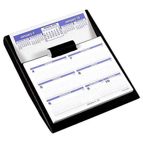- Feature : Complete Flip-A-Week set includes both desk calendar base and matching format weekly calendar pages. Weekly pages flip up and drop into convenient storage base making it easy to view the current week / Covers 12 months, January - December so you can stay organized year round. Julian dates. Weekly format including weekends features a wide layout with plenty of ruled writing space for each day / 7 x 5-5/8 inch page size. 8 x 9.5 x 2.5 inches overall size / Two past, current and two future months reference on each page assists planning and scheduling. Federal holidays in red for clear differentiation from other dates / Printed in blue and red inks for a professional look. Flip-A-Week calendar base has 1 ring and is made of durable, black plastic