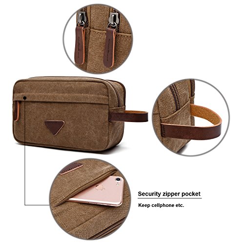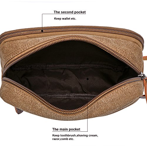 - ★High Quality Shaving Dopp Kit, made of 16oz canvas, no smell and Eco-friendly. And decorated with high quality leather. A Handle For Easy Carrying. Thick Large Zipper makes it easy to zip and unzip.