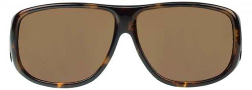 Fitovers Eyewear, are the world’s finest sunglasses specifically designed to be worn over prescription eyewear. The complete wrap around design is ideal for any outdoor activities, where annoying glare from the sun causes eye strain and discomfort. The Aviator Tortoiseshell style with Polarvue™ Amber lens blocks 99.9% of all reflected glare while allowing 16% of visible light to pass through the lens to your eye. Polarvue Amber lenses have a medium to dark brown/yellow tint that is ideal for bright sunny days and overcast conditions. The impact-resistant lenses meet ANSI-Z80.3 safety standards. [Fits over optical frames not exceeding: 148mm X 53mm or 5 7/8" x 2 1/16"] Please see the Fitovers size guide for all styles and fits.Feature