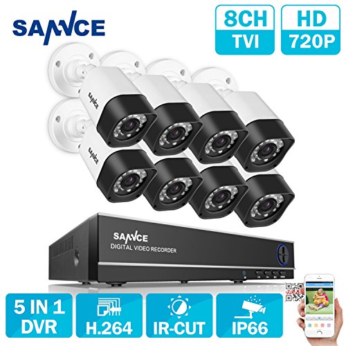 -. Title : SANNCE 8CH Full 1080N Security Camera System CCTV DVR and (8) 720P Night Vision Surveillance Cameras, IP66 Weatherproof , P2P Technology/E-Cloud Service, QR Code Scan Remote Access -No HDD