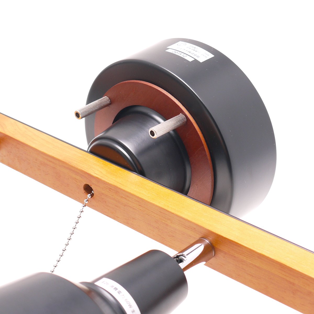Combining metal shade with straight wood frame, simple lighting ceiling spotlight which changes simplely the atmosphere of the room.