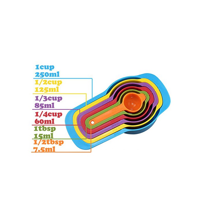KoKeo_Store 6PCS /세트 메이저 스푼 키친 측정 스푼 측정 컵 구이 기구 세트 컬러풀