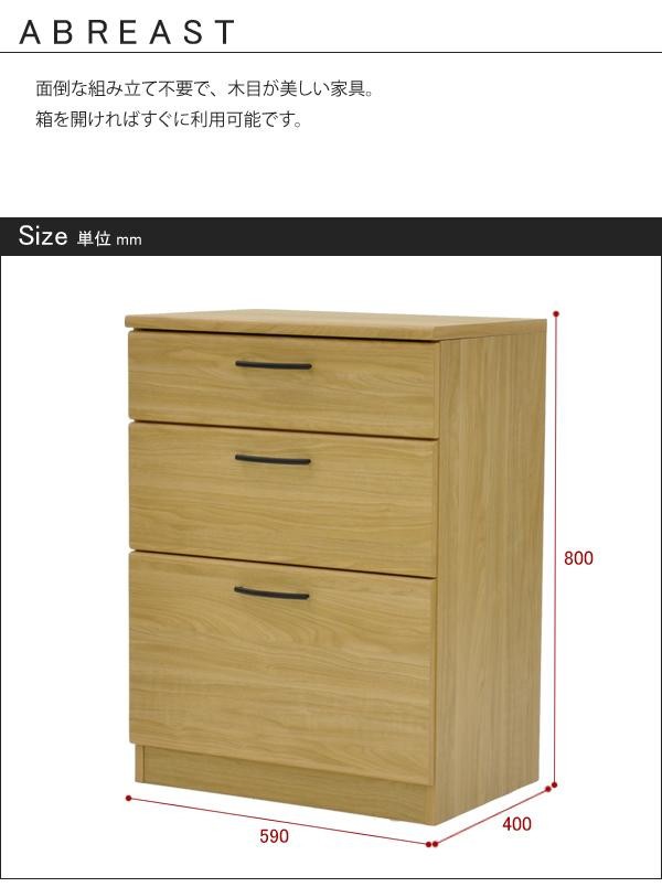 | 仕様 | 【引出し内寸】 上段:W523×D325×H106mm 中段:W523×D325×H176mm 下段:W503×D335×H237mm 【その他仕様】 完成品 耐荷重:天板15kg |