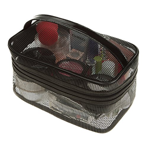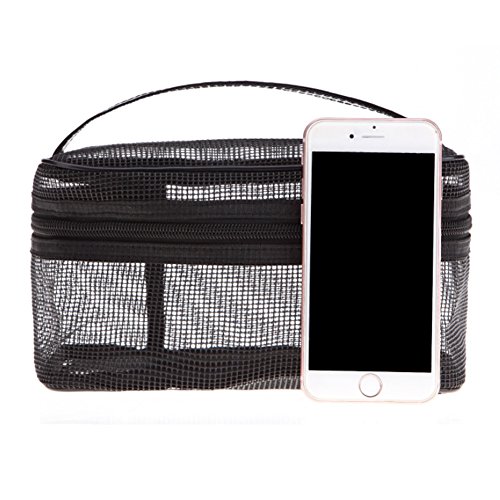 Ultra-light Makeup Bag Portable Mesh Cosmetic Organizer Case Travel Toiletry Bag with Handle for Vacation from Lesirit (A)