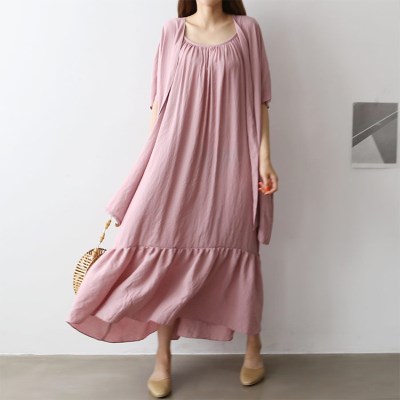 여유있는 핏으로 흐르는듯한 실루엣이 멋스러운 롱 원피스.