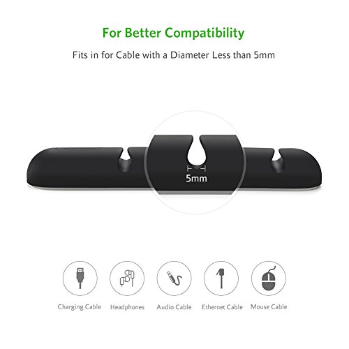 - The five rubber grips and four slots design allows you to hold 4 cables or cords less than 5mm diameter at the same time, such as power cords, USB cords, cell phone charging cables, audio cables, headphones, and more cables.