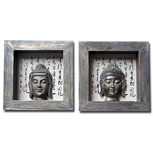 Buddha Bust Wall Art Antiqued Asian Writing 3D Shadow Box Shadowbox D67211
