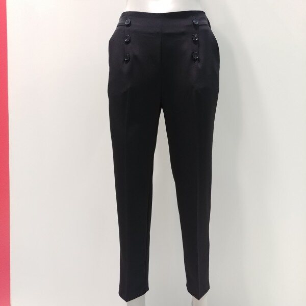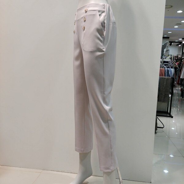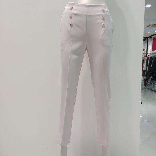 스트레이트 핏 팬츠로 세련되게 입기 좋은 편안한 팬츠 입니다 뒷부분만 밴드가 들어가 착용감이 편안한정장 팬츠 입니다 앞 단추 포인트인 신축성 좋은 소재의편한 슬랙스 입니다