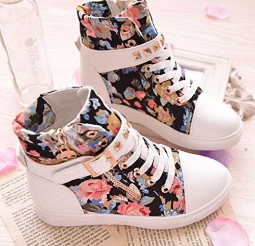 -. Title : (フアングー)huangguスニーカー レディース ズック シューズ ヒール 厚底 花柄 可愛い キュート カジュアル フライト 学生 通勤 通学 女の子 スポーツ 春 夏 秋 美脚 脚長