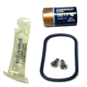 Battery Kit for ATOM Wristwatch. Includes factory approved battery, Battery Hatch O-ring, Silicone Grease, and Instructions.