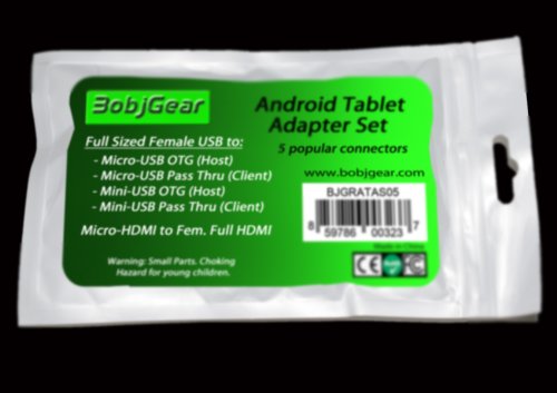 BobjGear Cable Adapter Set 5-Pack of Most Commonly Needed Adapters for Tablets and Devices: Micro USB OTG; Mini USB OTG; Micro USB Client; Mini USB Client; Micro HDMI to Full Sized HDMI