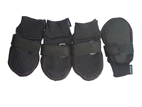 Essentially this set of LONSUNEER boots is the same as the boots with prior title Lifeful Summer Dog Simple Soft Sole Nonslip Mesh Boots, Breathable, Flexible and Cool, for Dog Daily Walks or Stroll, Set of 4, Black Color, Size X-Large. Their only difference is on the hang-tag and woven labels (The prior boots are with prior hang-tag, and they don't have woven labels).