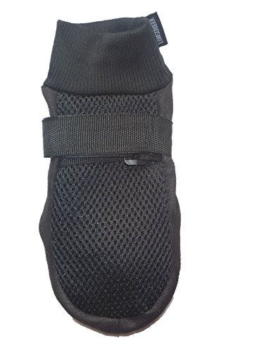 Upper is made of double-layer breathable mesh fabric, firmly hemmed by soft durable cloth around, with flexible cuffs at the top, capable to keep debris out, and make paws comfortable, cool and dry.