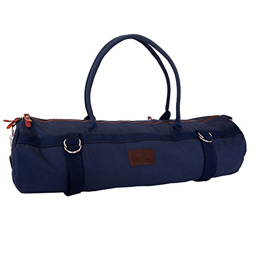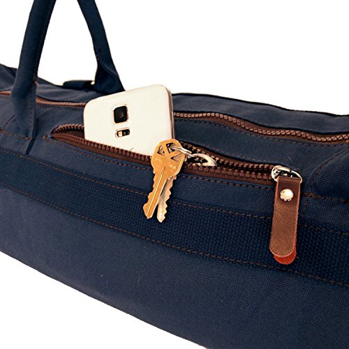 Yoga Mat Bag Carrier Canvas Solid Color with Pocket and Zipper (Navy)