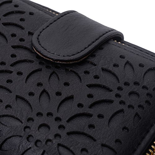 -. Feature : Unique Design: Nubuck Texture, Large Capacity, Multi-card Slots, Snaps Closure, Bifold, Vegan Material, Hollowed out Pattern / Size:14*3*9cm/5.51*1.18*3.54 inches / Made of Synthetic Material But Designed to Look Like Real Leather / Plenty of Room to Hold Paper Money, Credit Cards, Coins, Checkbook, i Phone, Ticket, License, Receipts, Coupon, Smartphone, Insurance Cards, Debit Cards etc, You Can Simply Hold it on Hand or Put it in bag, It's Portable When Traveling or Going out / Interior: 11 Card Slots, 1 ID Windows, 2 Compartments, 1 Zipper Pocket, 3 Concealed Compartments
