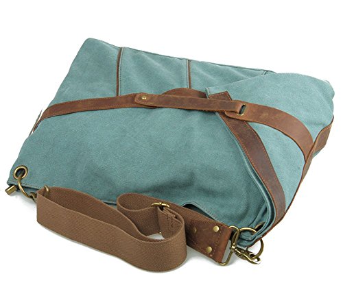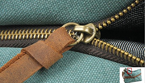 -. Feature : ★ Material: Cotton Canvas and Crazy Horse Genuine Leather / ★ Dimensions: S: 14.57 x 4.33 x 12.60 inch (L*W*H) ; L: 19.69 x 6.30 x 16.54 inch (L*W*H) / ★ The travel bag contain : 1 main compartment,2 inner slip pockets,2 inner zip pocket,1 back zip pocket and detachable strape / ★ This travel bag can hold : iPad Air,Kindle,books,A4 magazine and 14-19 inch laptop / ★ Full-grain leather,more comfortable and anti-skid.
