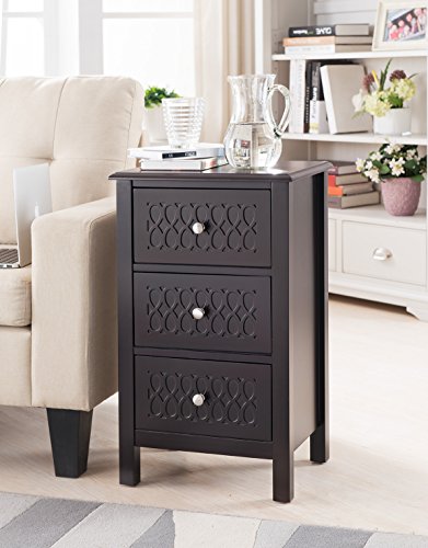 -. Feature : Kings Brand Furniture Espresso Finish Wood Accent Side End Table with Drawers / Give any room a touch of elegance while enjoying extra storage space with this furniture. / This versatile, wood piece functions as a side table, accent table, or night stand, making it perfect for any room. / Dimensions: 16"W x 12"D x 26"H. / Simple assembly required.